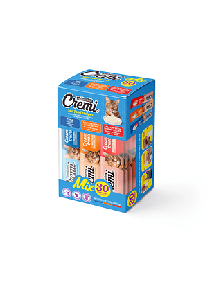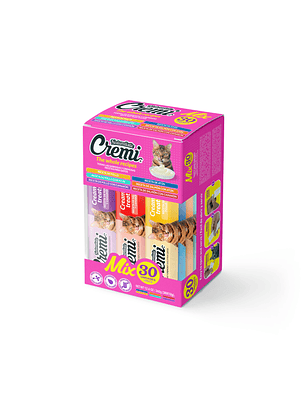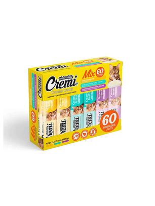 Cremi Box Sea Food Mix Caja de 60 Unidades Snack Gatos Atún, Salmón/Atún y Salmón/Camarón